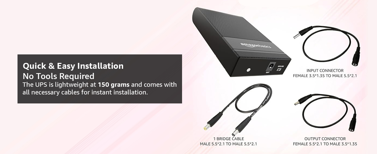 Amazon Basics UPS for WiFi Router/Modem/Set top Box Devices. Supports 12Vdc, 2.5A Routers. Backup Upto 4 Hours, Current Surge & Deep Discharge Protection (Black)