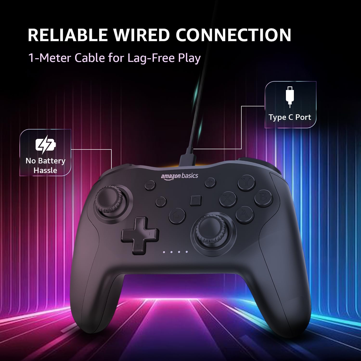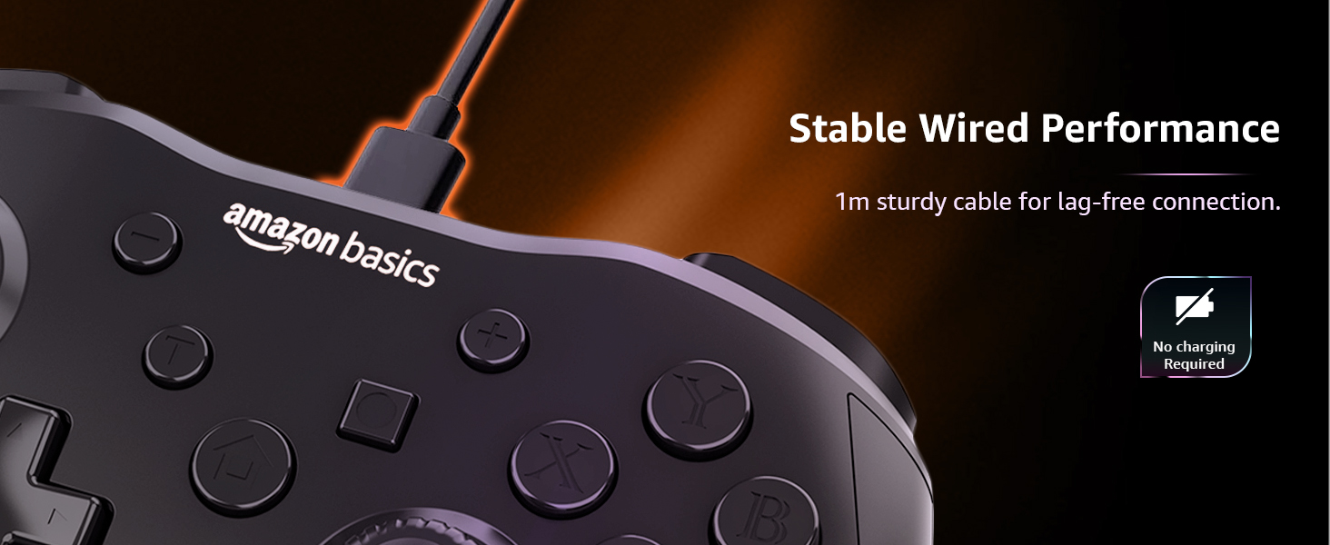 Be the first to review “Amazon Basics USB Gamepad with Turbo Mode | Dual Vibration | PS3 & PC Support | X Input & Direct Input | Wired Controller with Ergonomic Design | 1m Cable | Black”