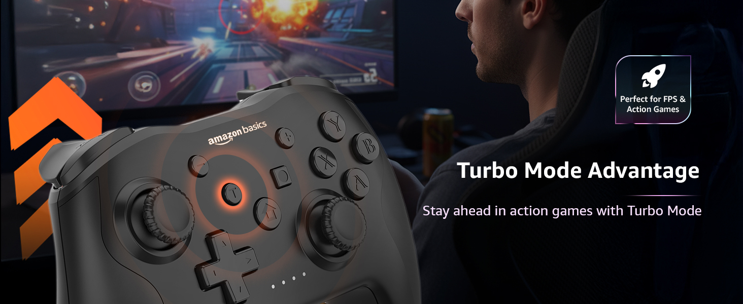 Turbo Mode Functionality: Rapid-fire capability enhances performance in fast-paced games without thumb fatigue.