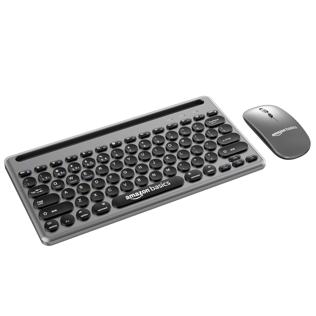 Amazon Basics Wireless Keyboard and Mouse Set with Bluetooth multiconnect, 2.4GHz Receiver,1600 DPI, Smartphone/Tablet Holder, Built in Rechargeable Battery