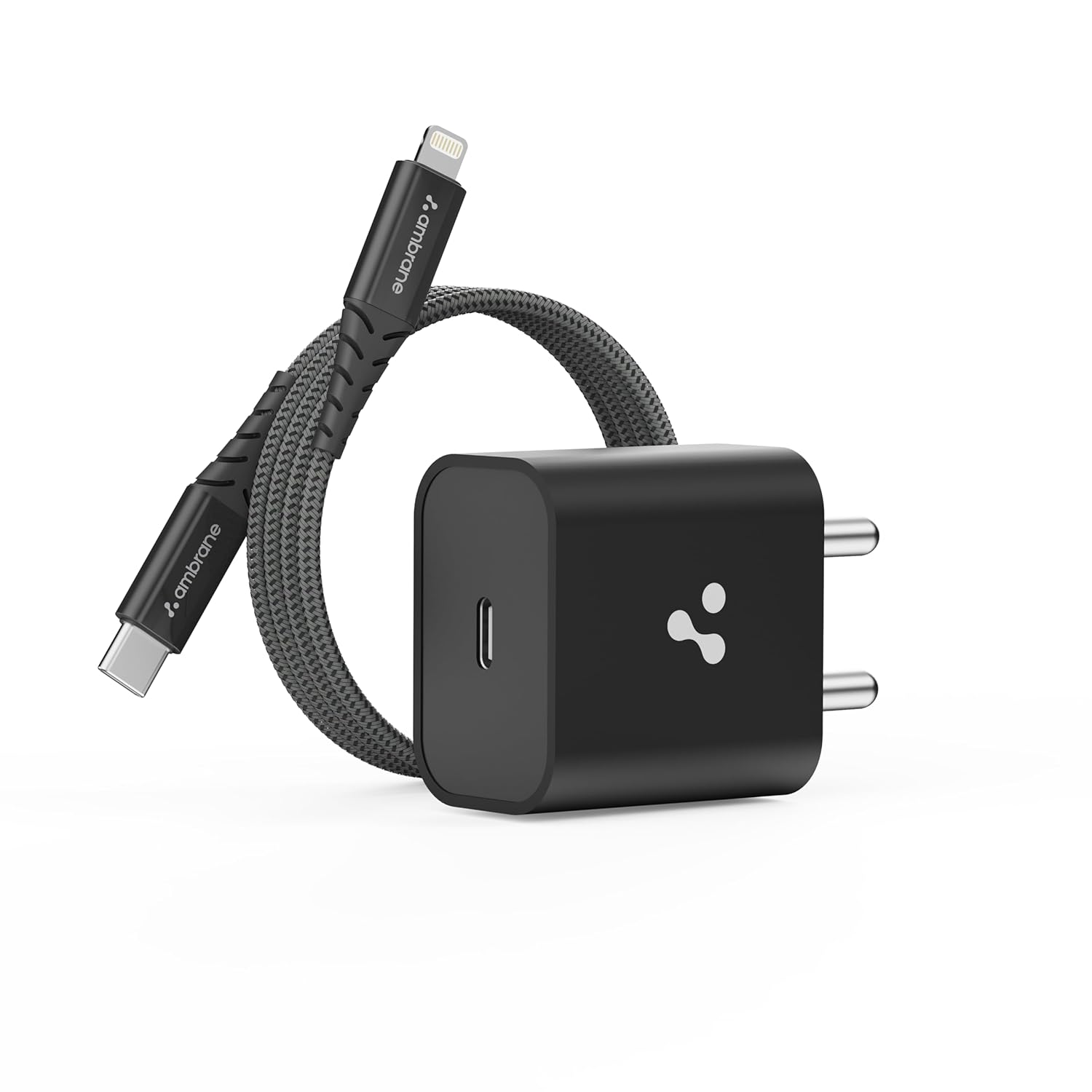 Ambrane 20W Mobile Charger Adapter with Lightning Cable || Fast Charging for Android, iPhone 14/13,13/12/11/X & Pro, Max Series & Other Type C Enabled Devices, PD Technology, BIS Certified (Raap M20)