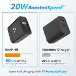 The Ambrane RAAP H11 wall charger harnesses a blazing charging speed of 20W, ensuring lightning-fast power delivery to your devices, so you can get back to full battery life in no time.