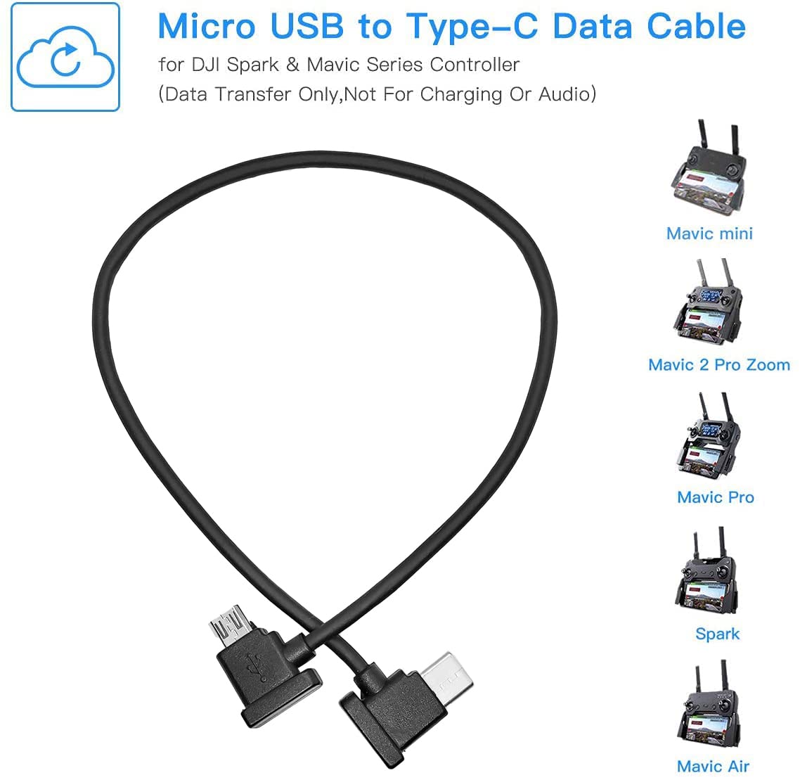 Micro USB to Type-C OTC cable is used to connect phone to DJI Mavic MIni remote controller for data transfer