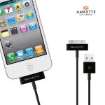 Amkette 30 Pin to USB Charging & Data Sync Cable for iPhone 3G/3GS/4/4s/iPad 1/2/3, iPod Nano 5th/6th Gen and iPod Touch 3rd/4th Gen -1.5m (Black)