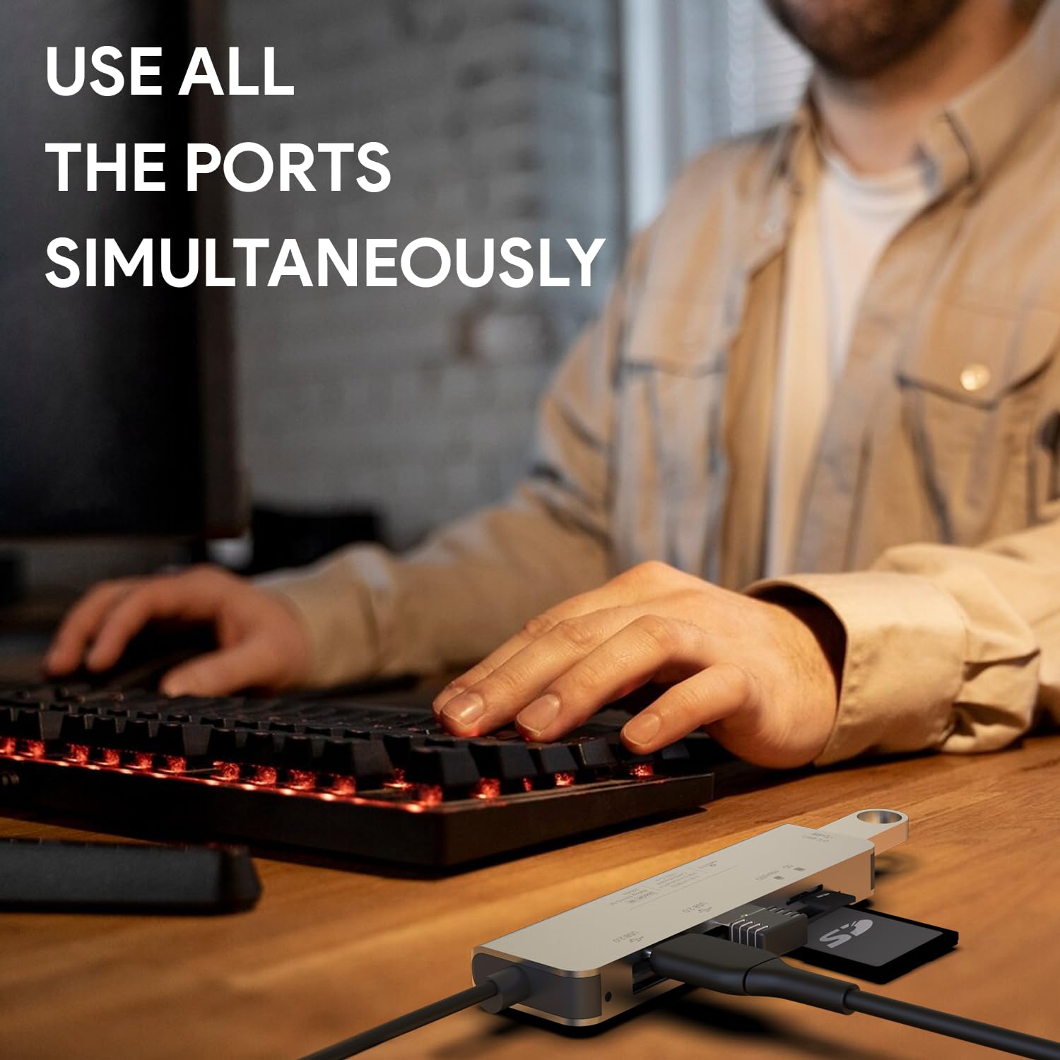 𝟱-𝗶𝗻-𝟭 𝗠𝘂𝗹𝘁𝗶𝗽𝗼𝗿𝘁 𝗗𝗲𝘀𝗶𝗴𝗻: Includes 1 USB 3.0 port, 2 USB 2.0 ports, and 1 SD&TF card reader slot for versatile connectivity.