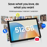 [Large Storage] With 64GB storage that can be expandable up to 128GB, this tablet can store business or work notes, photos, videos, files you need to download your favorite apps and browse the web.
