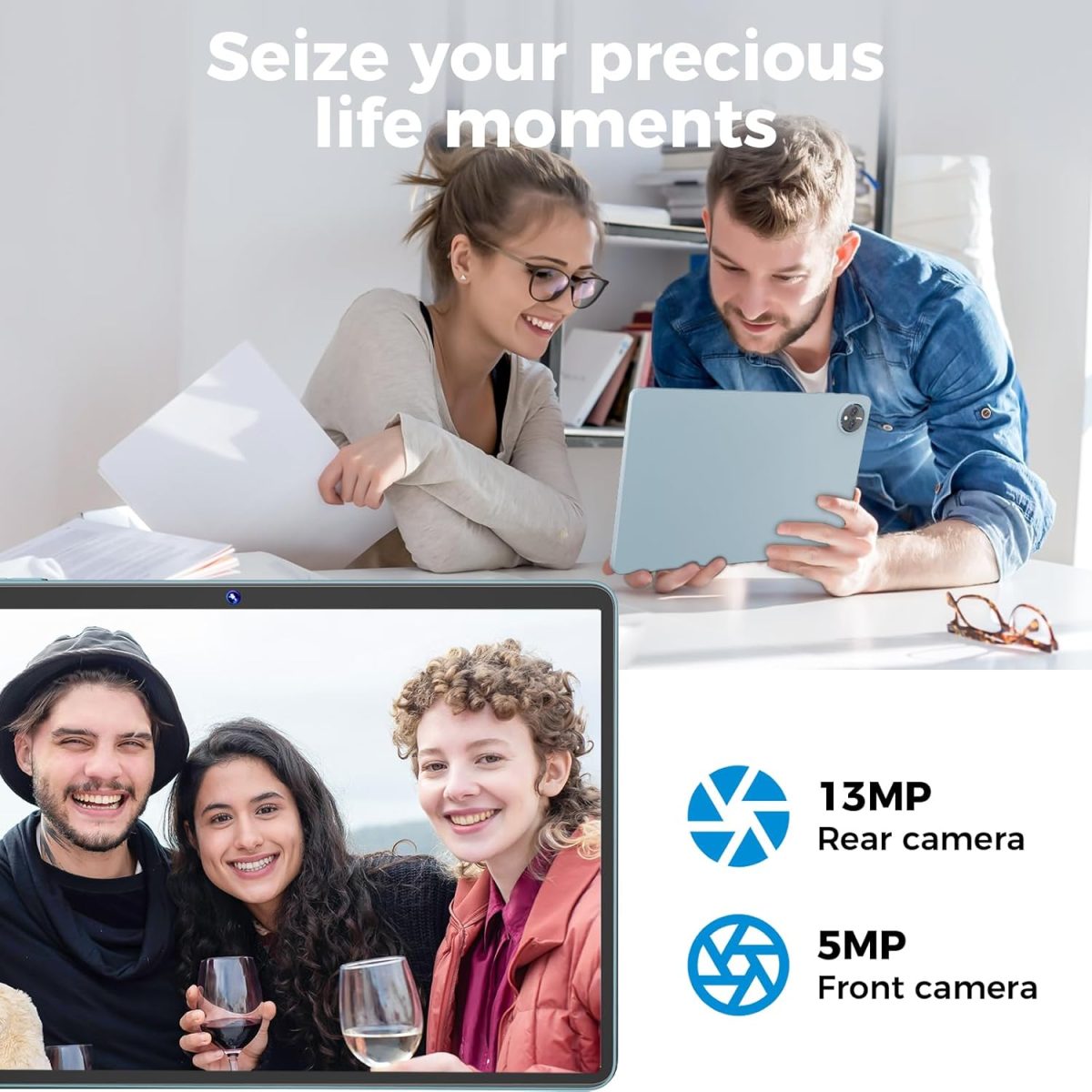 11″ IPS Touch Screen and HD Camera: This Android 14 tablet features a 11-inch IPS sensitive view with 1280 x 800 resolution. Larger, clear viewing provides a more immersive visual experience. It is also equipped with dual 13MP+5MP cameras, allowing you to take landscape photos and capture the beauty of life anytime and anywhere. Also perfect for everyday use, online meetings or video calls.