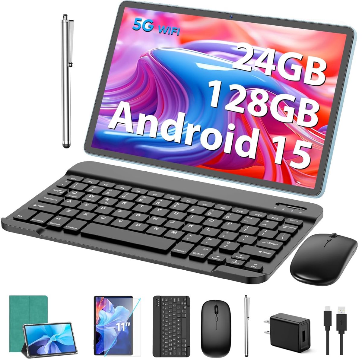 Android Tablet, 14 11″ Android Tablet with Keyboard, 12GB+128GB, 1TB Expansion, 8000mAh, 5MP+13MP, 2.4G and 5G WiFi, IPS Touchscreen, GMS Certified, 2-in-1 Tablets with