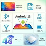 Be the first to review “Android Tablet with SIM Card Slot Unlocked, 12 in Large Tablets, 16GB RAM+256GB ROM, 4G LET Cellular Tablet, WiFi BT5.0 GPS Octa-Core, 8000mAh, Dual Camera, Supports Telephone Functions, Black”