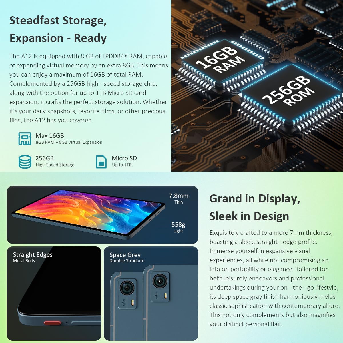 Powerful Performance Unlocked Android Tablet: Experience lightning-fast speed and seamless multitasking with the Octa-Core CPU and 16GB RAM (8+8 Virtual). Whether you’re gaming, streaming or working on multiple apps, this Android tablet handles it all with ease. And the the storage can be expandable to 512GB with an SD card gives you plenty of space for apps, photos, videos and more.