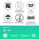 Fan Support : 3 x 120 mm Top, 3 x 120 mm Bottom, 1 x 120 mm Rear, 3 x 120 mm / 2 x 140 mm Side ; Pre-Installed : 1 x 120mm ARGB Rear Fan (Normal Blades) and 3 x 120mm ARGB Side Fans (Reverse Blades)