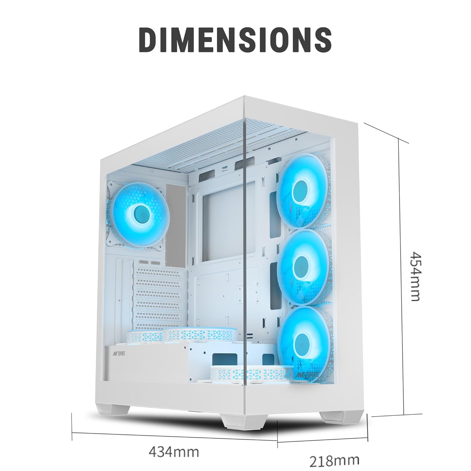 Ant Esports Crystal X7 ATX Computer Case/Gaming Cabinet with Type-C – White | Support ATX, Micro-ATX, Mini-ITX | Pre-Installed 3 M/B Plate Fans, 2 PSU Shroud Fans, 1 Bottom & 1 Rear Fan