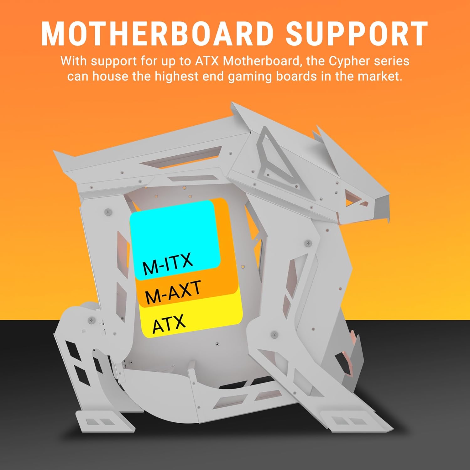 Break the Traditions! Break the traditional design language with the dynamic build of the Cypher Series of Cabinets that provides a unique look for your gaming build