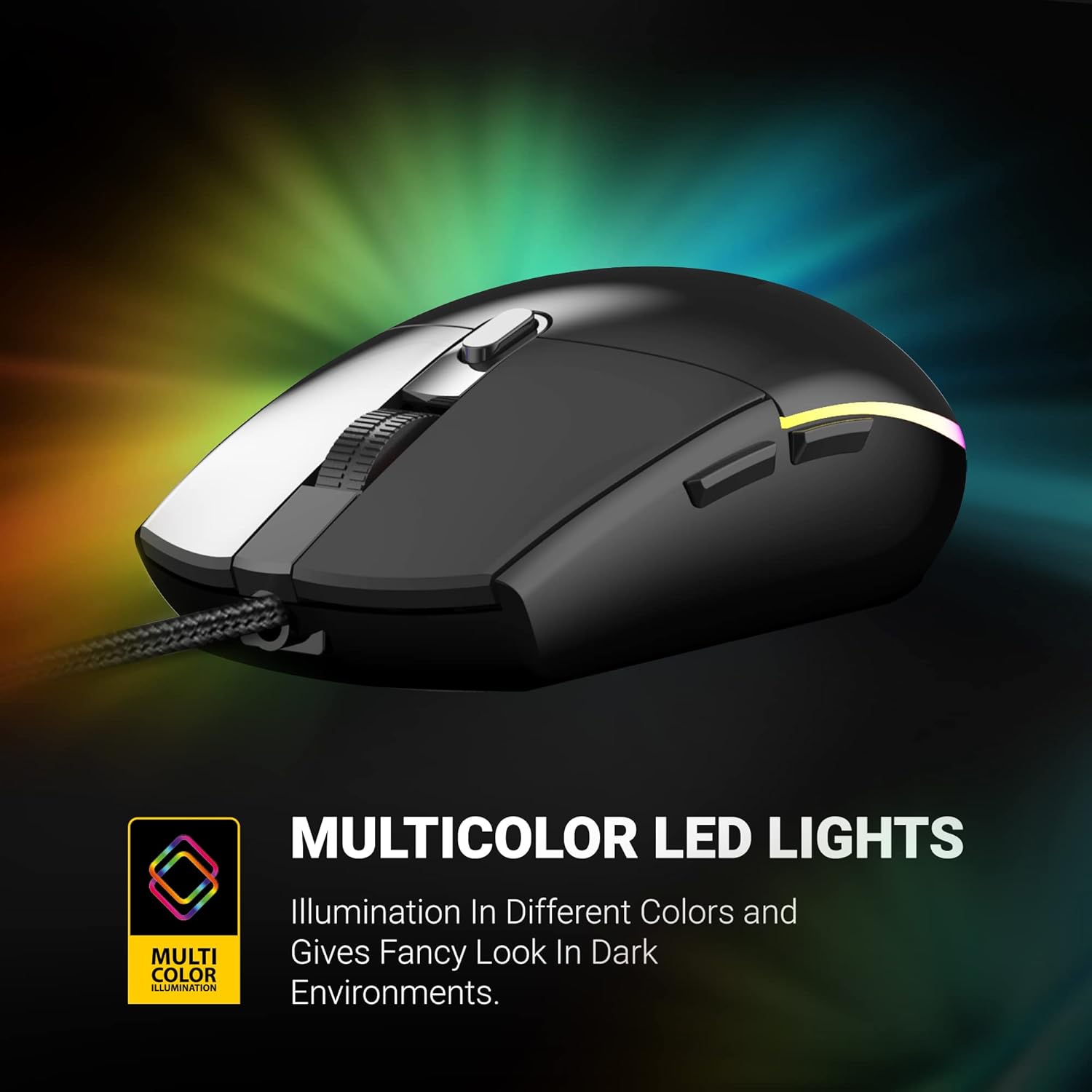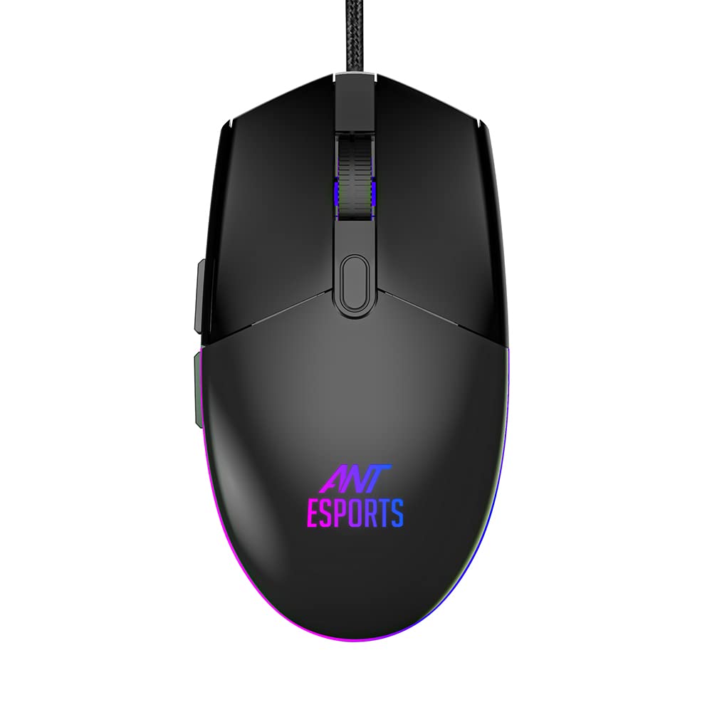 Ant Esports GM60 Optical Gaming Mouse Wired, 6 Programmable Buttons, 3200 DPI Adjustable, Optical Gamer Gaming Mice with Multicolour LED Lights – Black