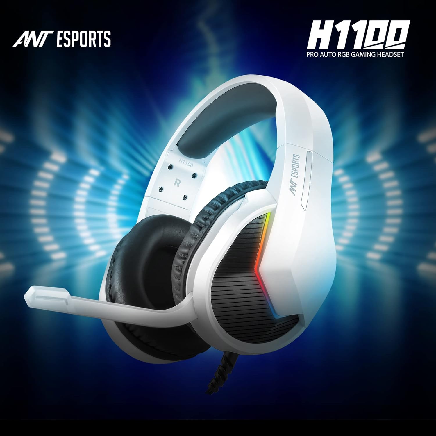 Ant Esports H1100 Pro RGB Wired Over Ear Gaming Headphones for PC / PS4 / PS5 / Xbox One / Switch1 with mic Frost White