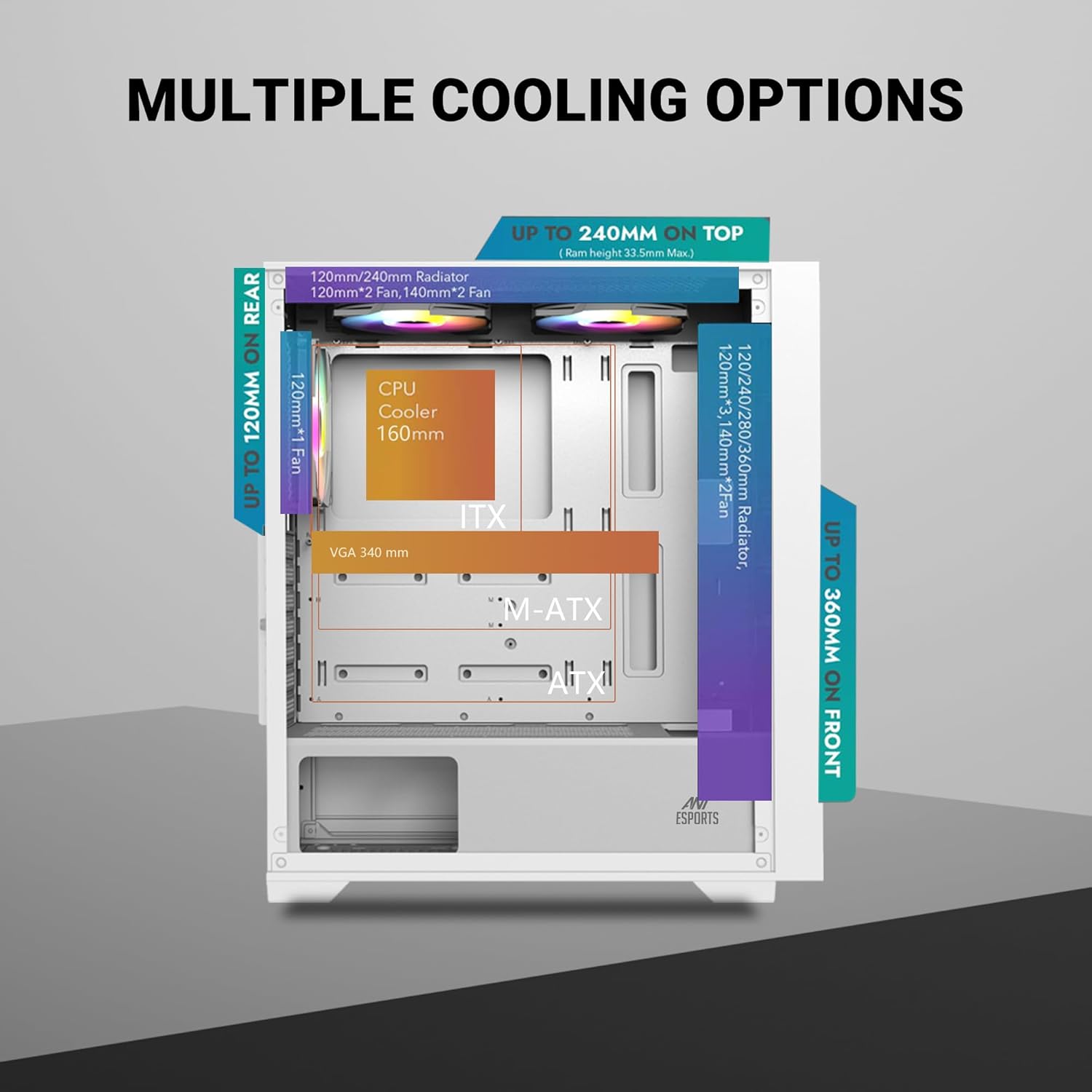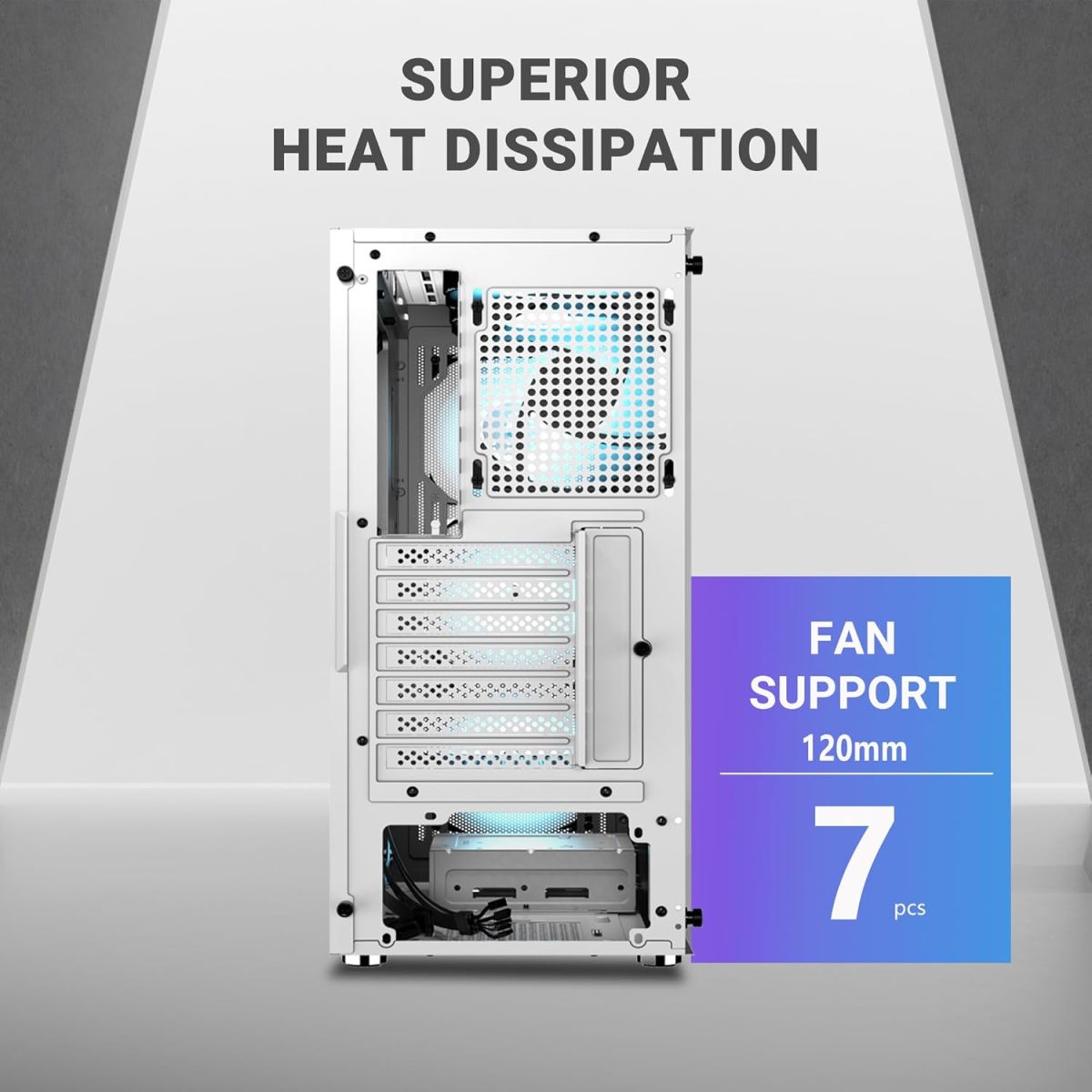Fan Support : 3 x 120mm/ 2 x 140mm Front, 2 x 120mm/ 2 x 140mm Top, 1 x 120mm Rear