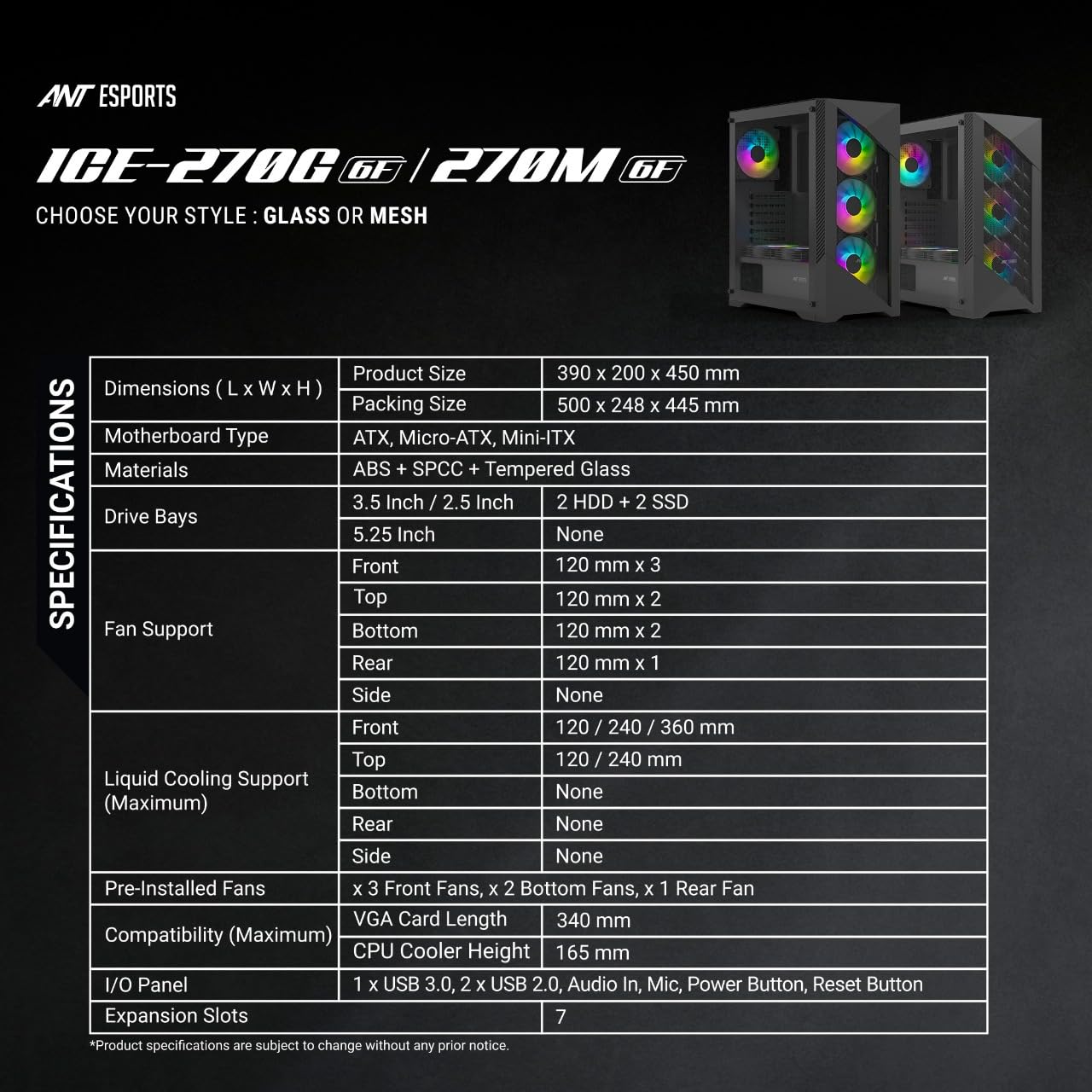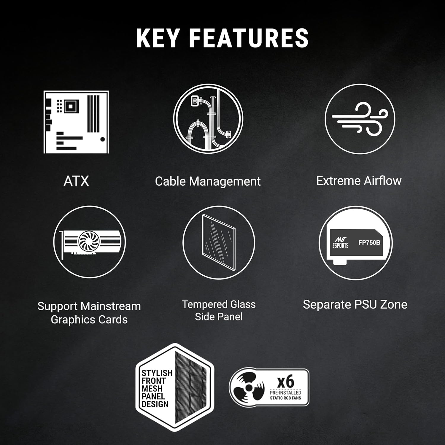 6 Fans, 0 Compromises! Get great airflow and cooling with 6t Pre-Installed Static RGB FANs out of the box, and the option to mount 360mm AIO in front, or 240mm on Top.