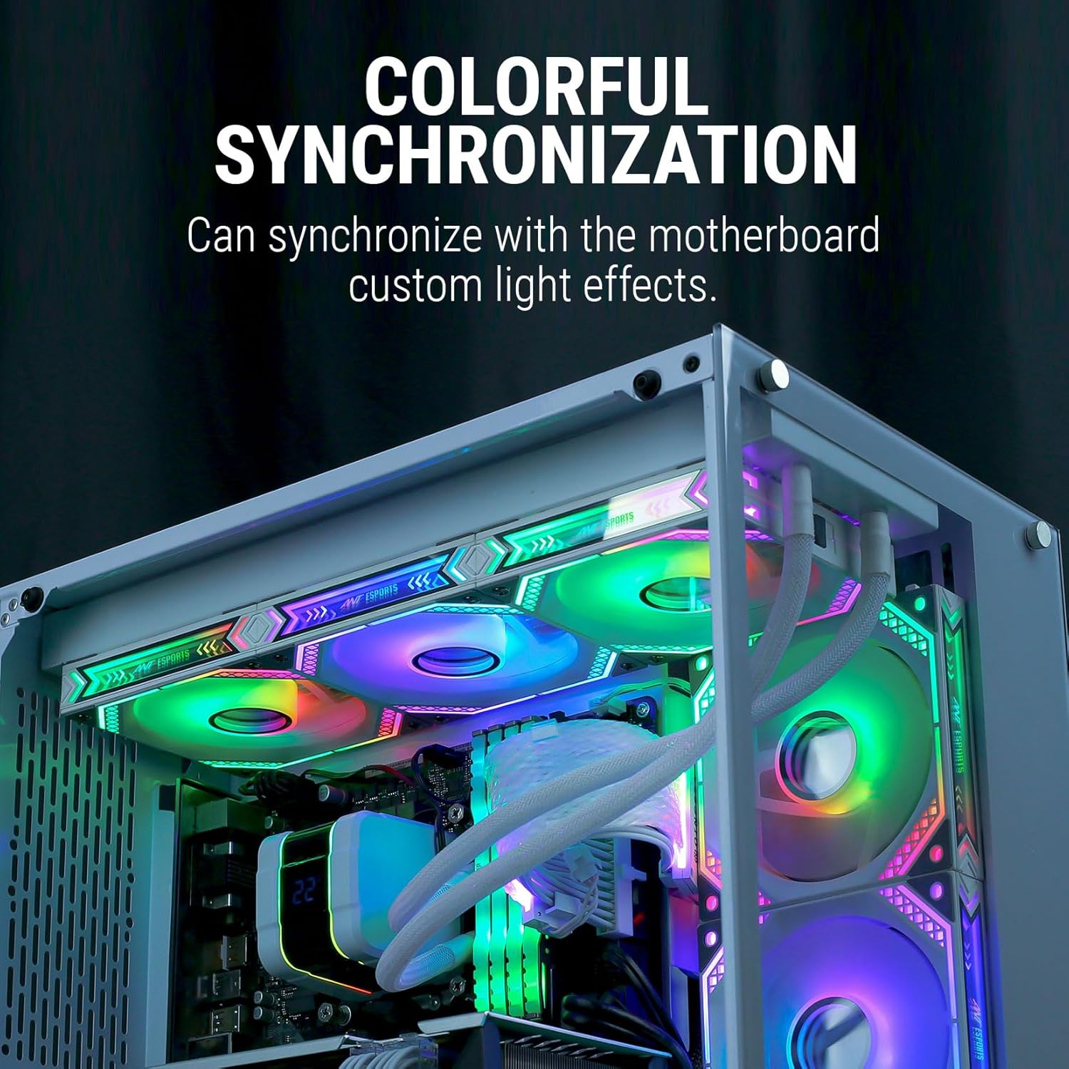 Mesmerizing Infinity Mirror Design: Immerse yourself in a stunning visual spectacle with the infinity mirror design adorning the sides of each fan. The mesmerizing lighting effects add a captivating dimension to your gaming setup, enhancing both aesthetics and ambiance.