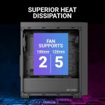 Fan Support : 2 x 120/140 mm Front, 2 x 120 mm Top, 1 x 120 mm Rear