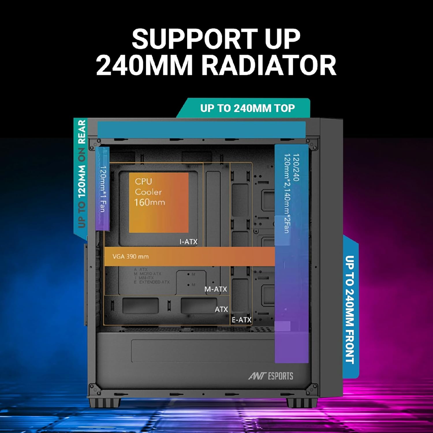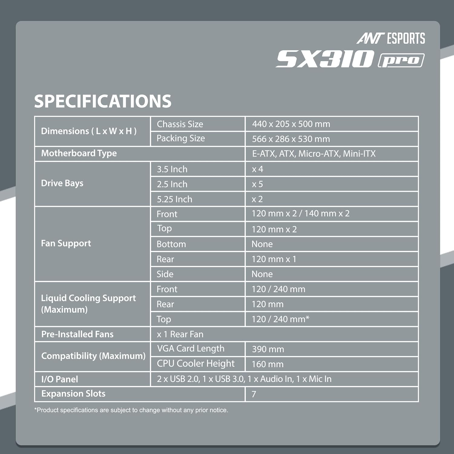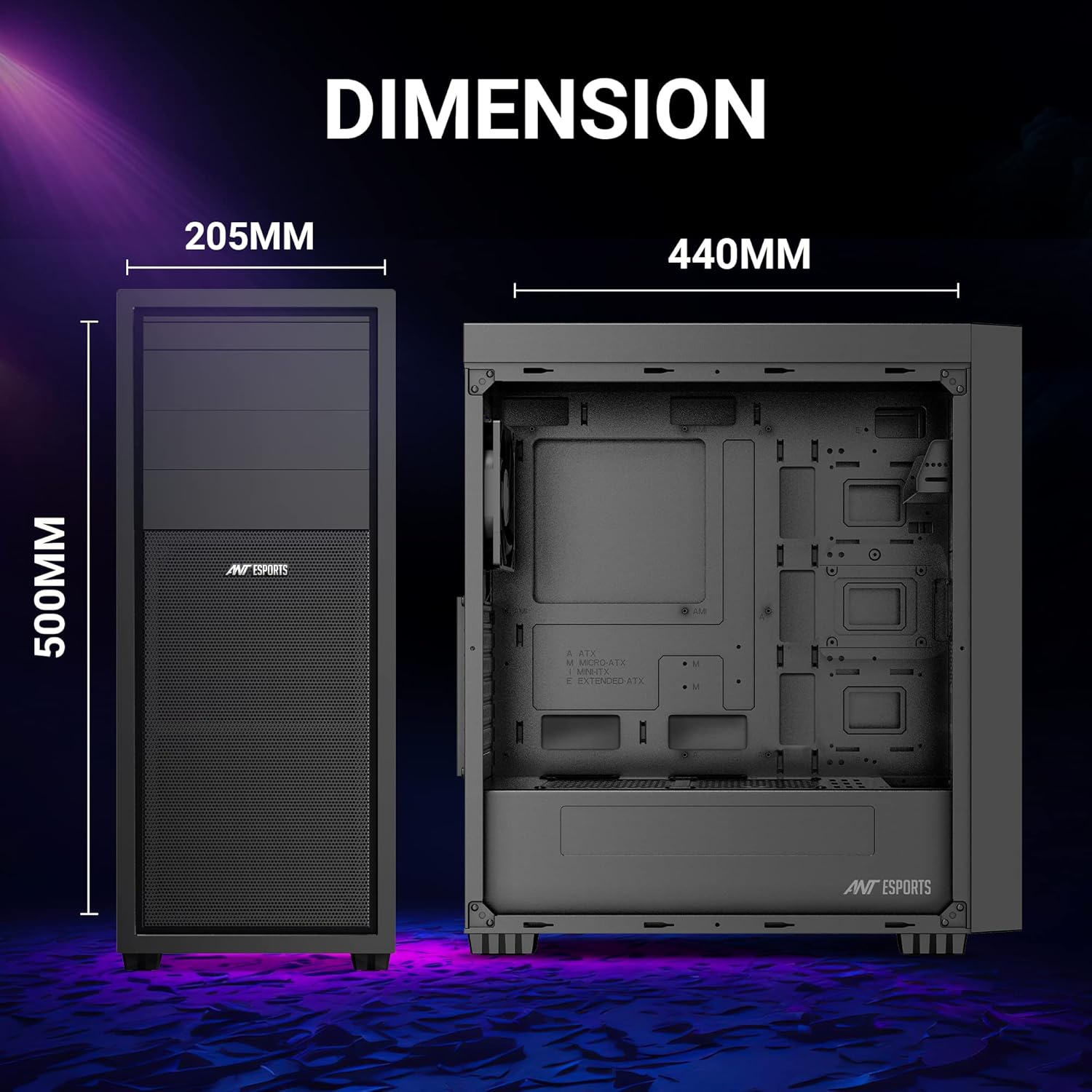 Ant Esports SX310 PRO Mid- Tower Computer Case/Gaming Cabinet – Black | Support E-ATX, ATX, Micro-ATX, Mini-ITX | Pre- Installed 1 Rear Fan