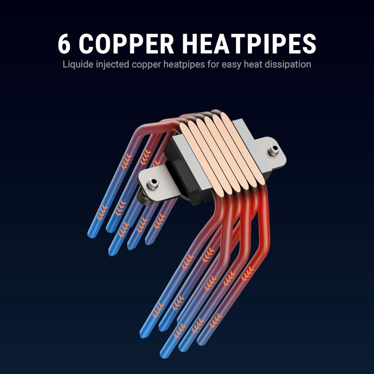 🔲 High-Density Finstack and 6 Copper Heatpipes