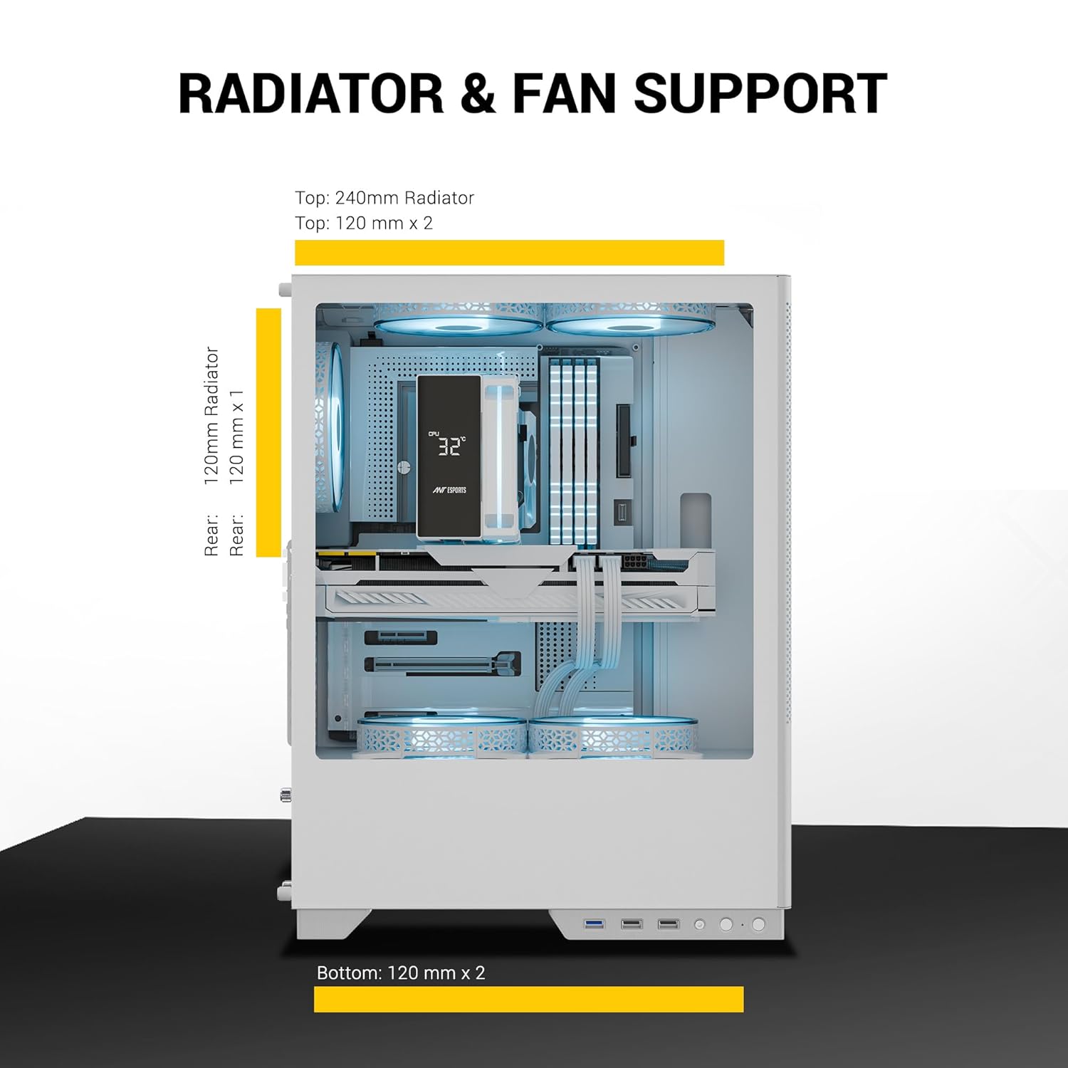 Fan Support : 2 x 120mm Top, 1 x 120mm Rear ,2 x 120 mm Bottom