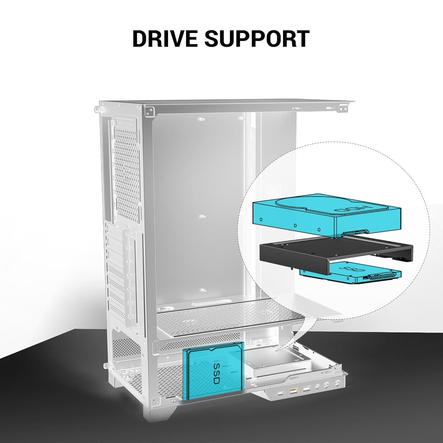 7 Expansion Slots, 1 HDD + 2 SSD – 3.5” / 2.5″ Drive Bay