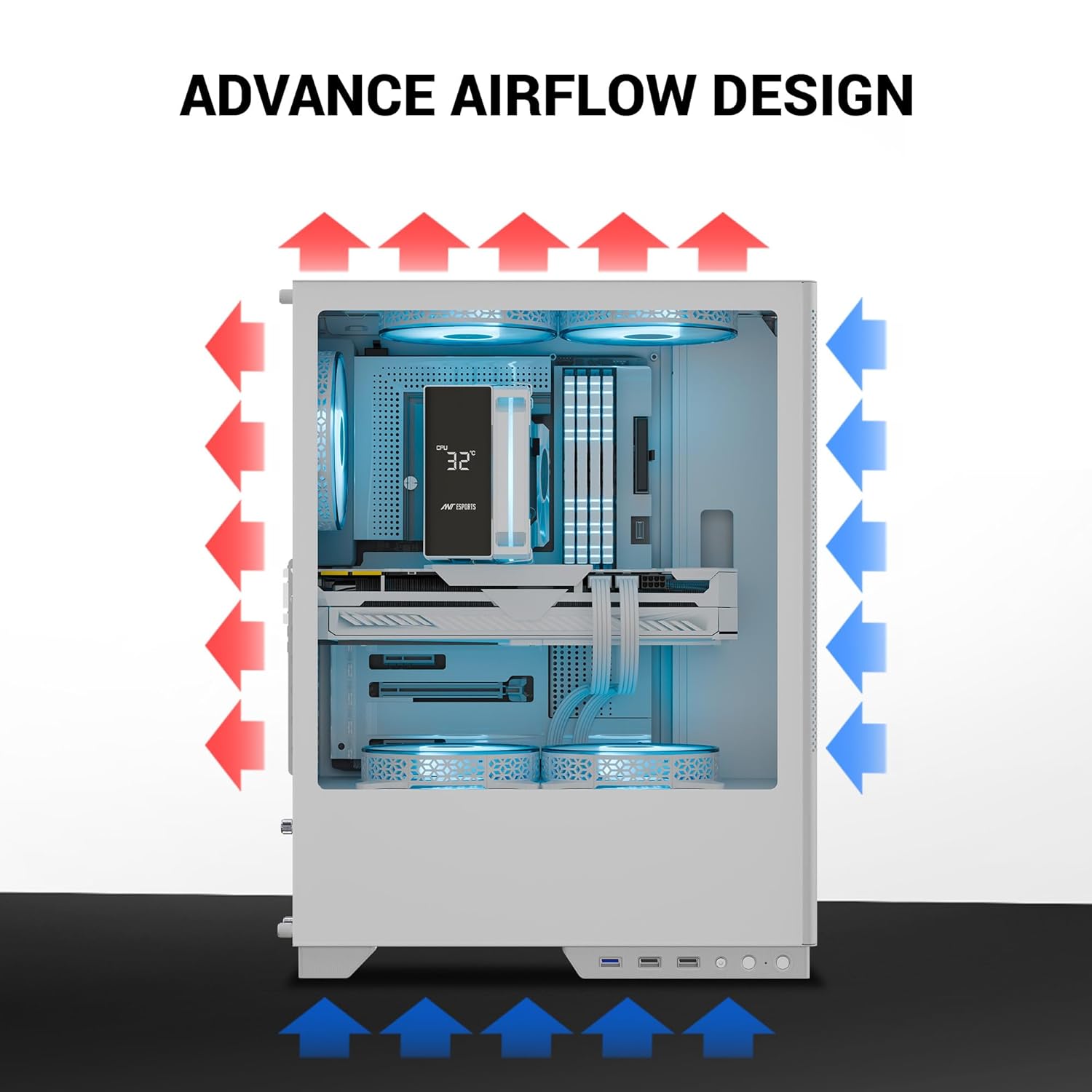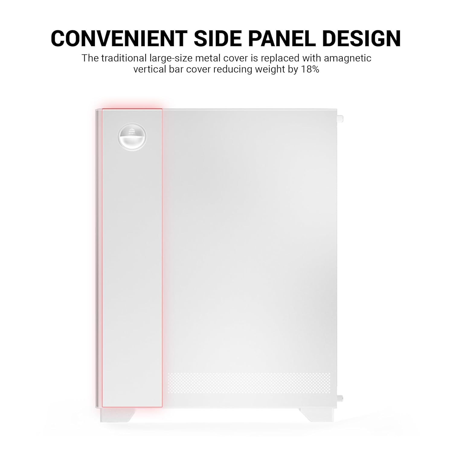 White , ATX Mid-Tower, 340 x 190 x 450 mm , Tempered Glass Side Panel