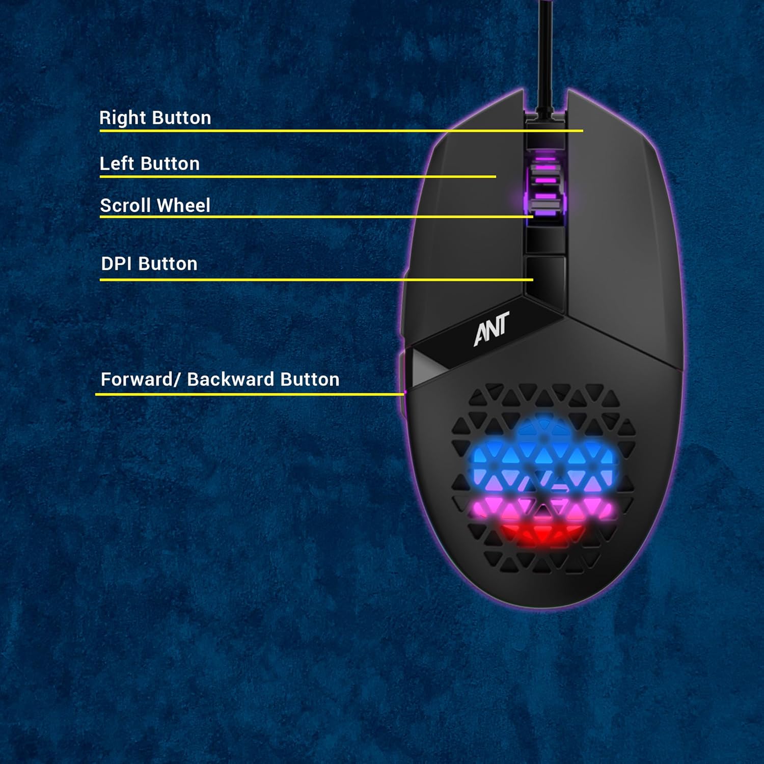 Ant G10 Gaming Mouse, Wired PC Mouse with RGB Backlit and Adjustable DPI, Ergonomic Office Laptop Mouse, Computer Gamer Mouse with 7 Responsive Buttons for Windows/Mac/Linux/Chrome
