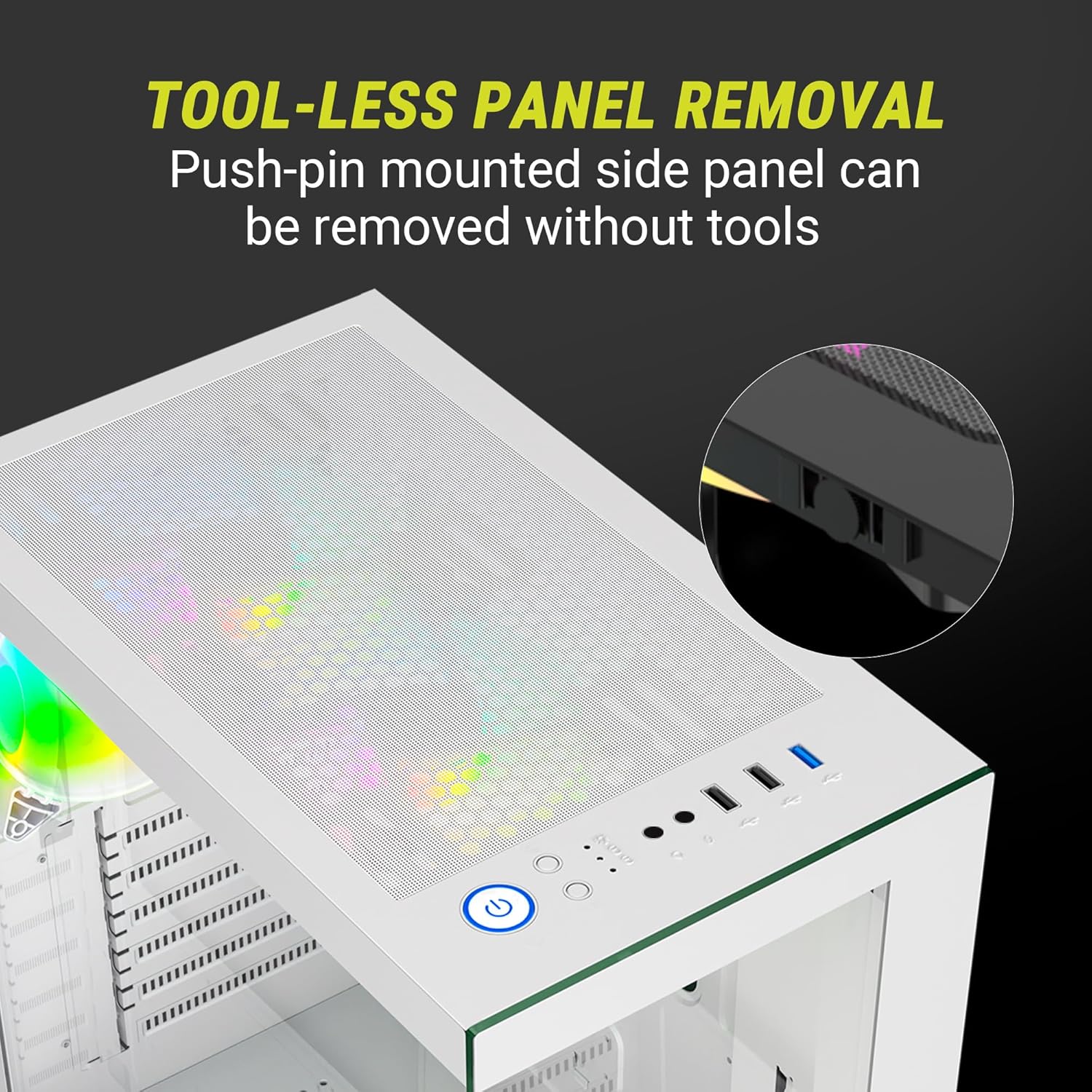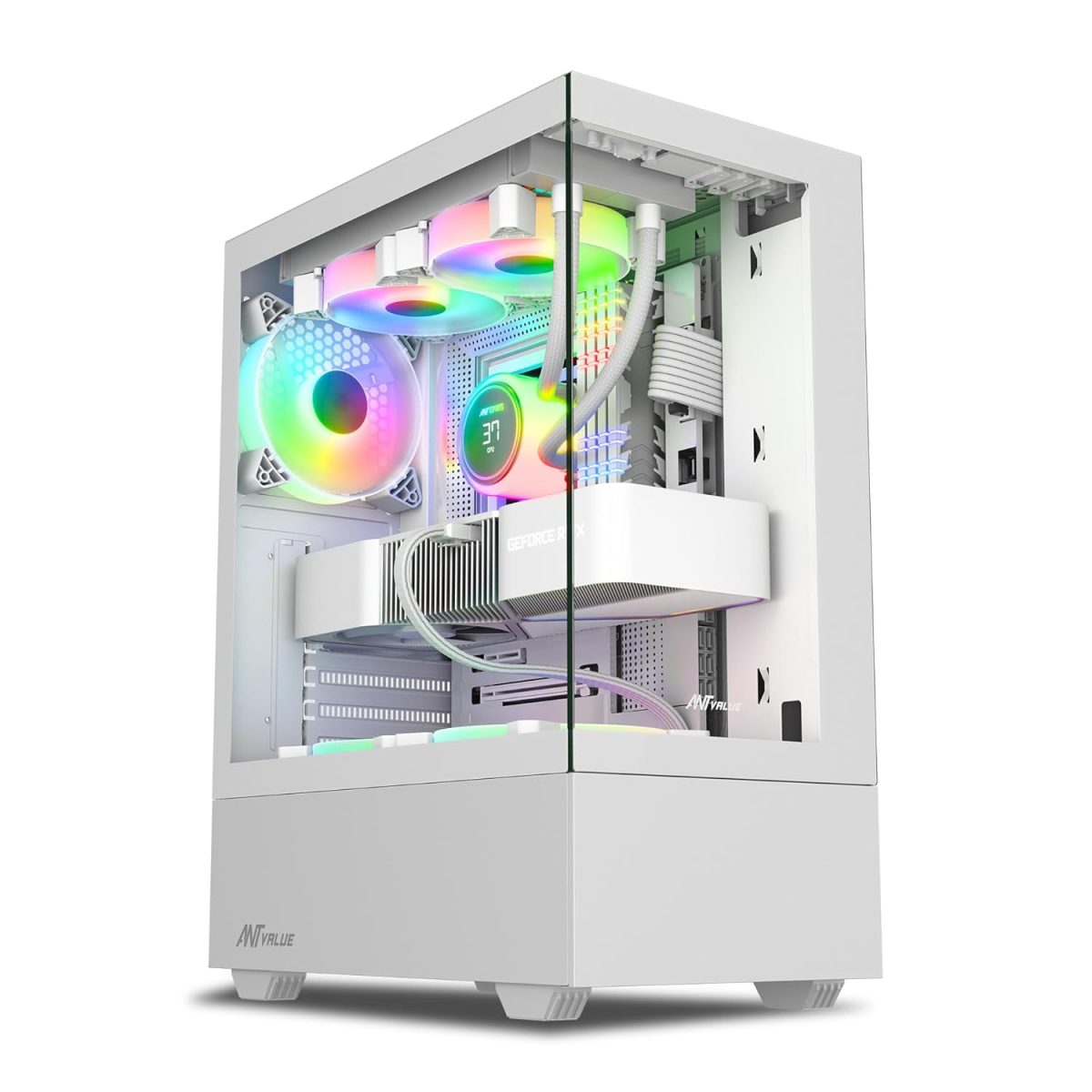 Ant Value Tempered_Glass CV100 Mid-Tower Computer Case/Gaming Cabinet – White | Support ATX, M-ATX, ITX | Pre-Installed 2 Top & 1 Rear Rainbow Fans