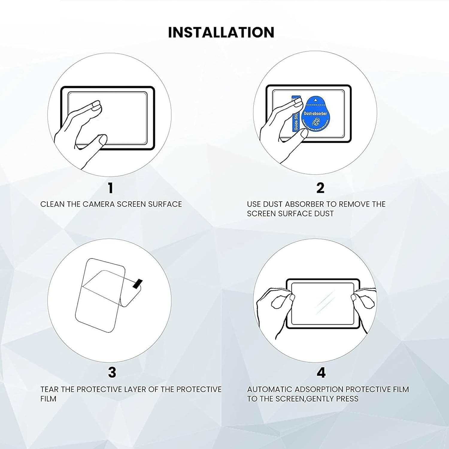 😁NOTE :⭐Material: 9H Hardness Unbreakable (NOT Tempered Glass) ⭐Color : Clear ⭐ Package includes: Screen Protector + Cleaning Cloth + Wet wipe + Bubble remover ⭐ Features: ✔ The product is identified with the professional laser cutting, which used the environmental protection materials to cover your DSLR screen precisely. No bubbles left when using it properly ✔ HD, 9H Hardness and Ultra-thin help your screen easier to be seen and prevent your screen from dust, oil, water and scratch. Just wipe lightly with our auxiliary tools when it becomes dirty ✔ Automatic adsorption helps you install easier ⭐ How to install? 👉 ① Wash your hands thoroughly, keep them clean and dry. 👉 ② Clean your navi screen with the Alcohol Prep Pad 👉 ③ Wipe the screen dry with the Micro-Fiber Cleaning Cloth, no dust, water or other residues left. 👉 ④ Use dust removal stickers to make surface dust disappear, make sure of the placement before removing the backing 👉 ⑤ Put the suction cup toward the corners of the protector, squeeze the suction up with a little force