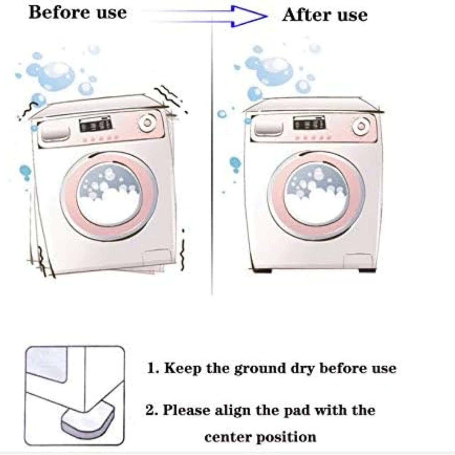 Easy installation: no installation tools or adhesives are required to install the anti-vibration pad, just the bottom of the household appliances. Note: keep the floor dry and clean when laying to prevent slipping