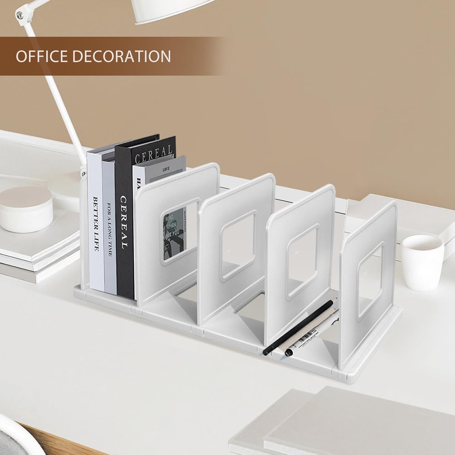 Perfect for keeping books, files, cutting boards, or plates neatly arranged.Features multiple slots that can be expanded or reduced to fit your needs.Made of high-quality, thick plastic — stable, strong, and long-lasting.Smooth surface makes cleaning quick and effortless.Sleek white finish complements any home, office, or kitchen décor.Ideal for desks, cabinets, drawers, or countertops — organize anything efficiently.Keeps items securely in place without scratching your surfaces.