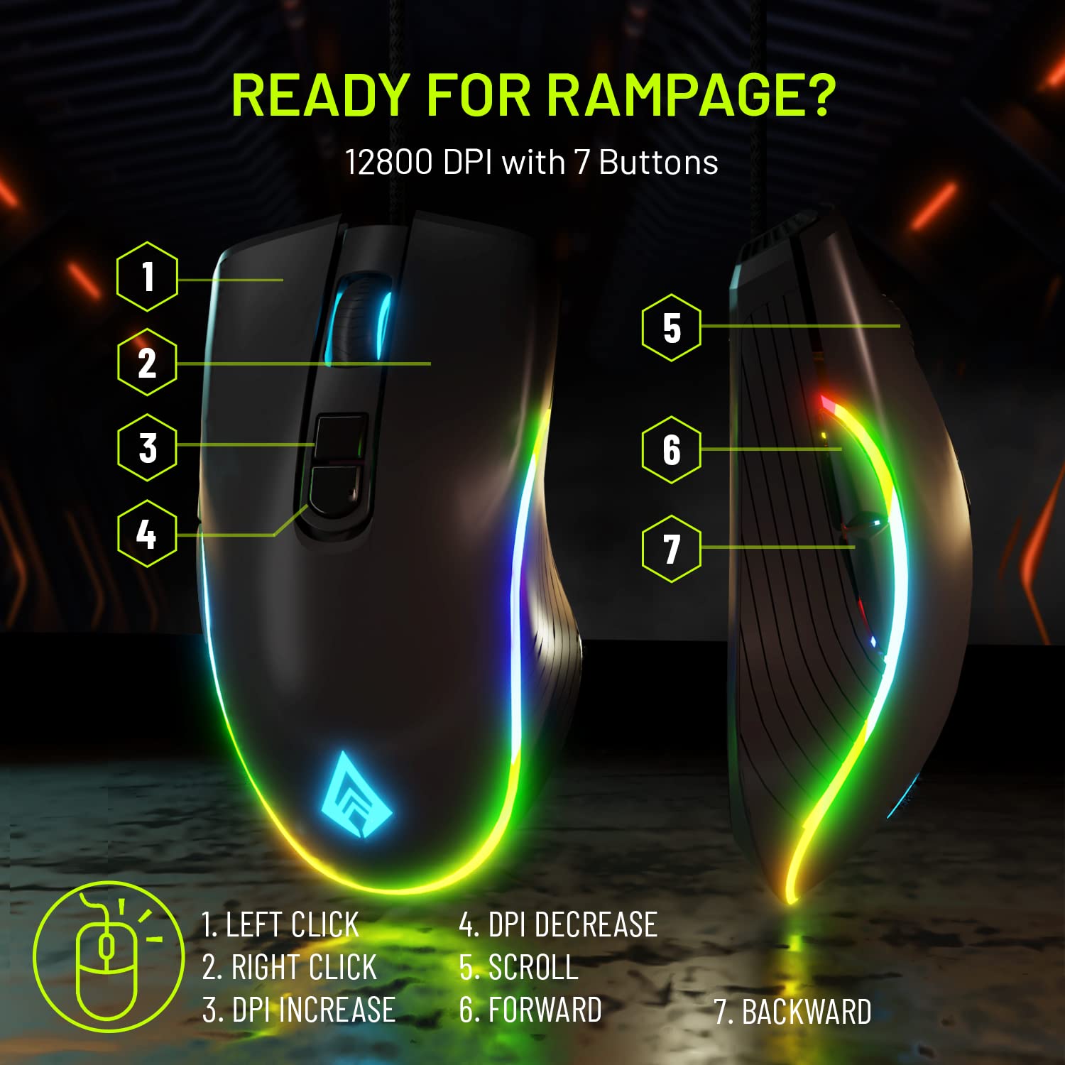 Power packed with 12800 DPI, 7 buttons, and premium rubber oil finish; now be the G.O.A.T you always wanted to be!