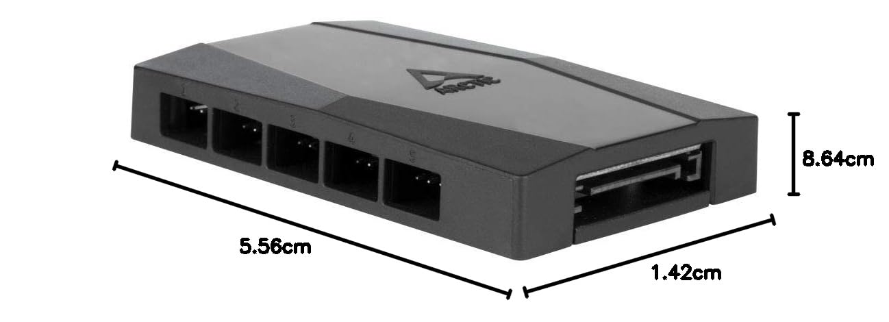 TECHNICAL DETAILS: Output: 10 x 4-pin PWM Socket, Output Current: up to 1 A per Port, Input: SATA Power + 4-pin Fan Header, Input Current: up to 4.5 A, Dimensions: 55.6 x 86.3 x 14.3 mm, Weight: 50 g