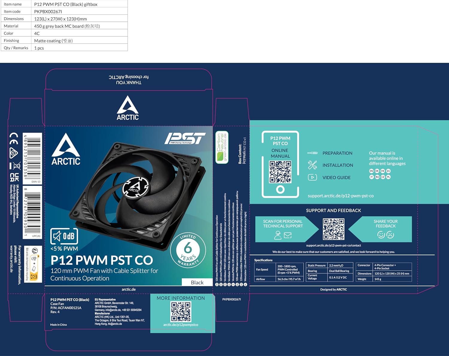 Be the first to review “ARCTIC P12 PWM PST CO – 120 mm Case Fan, PWM Sharing Technology (PST), Pressure-optimised, Dual Ball Bearing for Continuous Operation, Computer, 200-1800 RPM – Black”