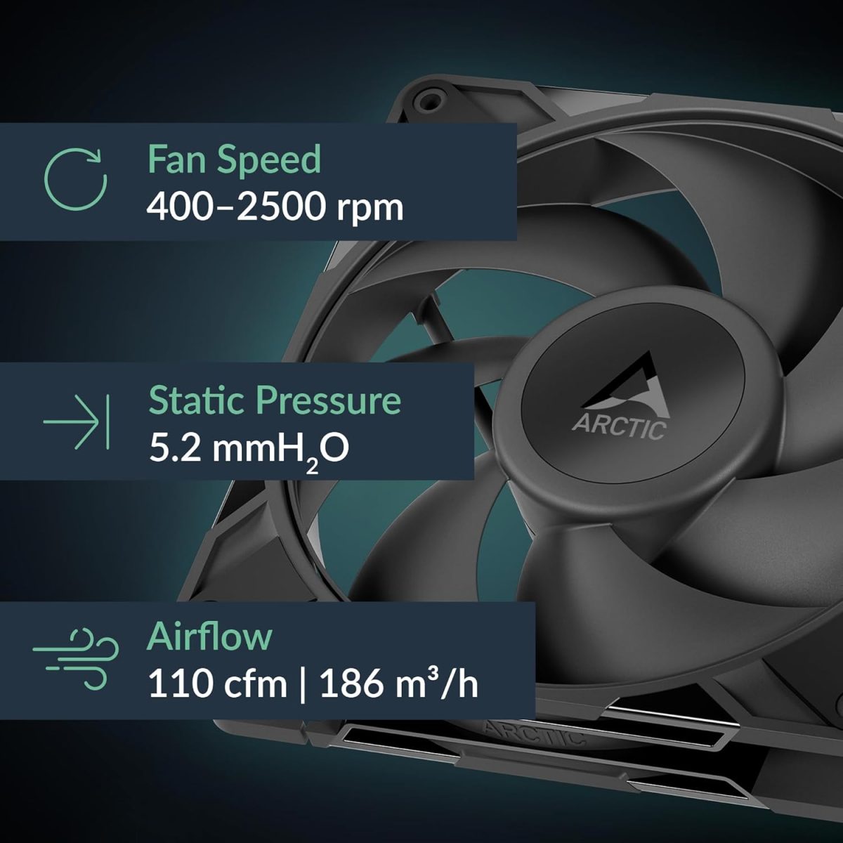 HIGH STATIC PRESSURE: Efficient even with resistance – the generated airflow easily penetrates dense radiators, narrow perforated panels and mesh structures and ensures reliable cooling