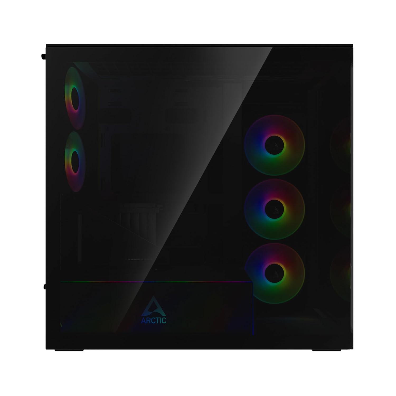 A-RGB PSU COVER: Integrated glass panel with 24 individually addressable RGB LEDs illuminates the lower section of the case.