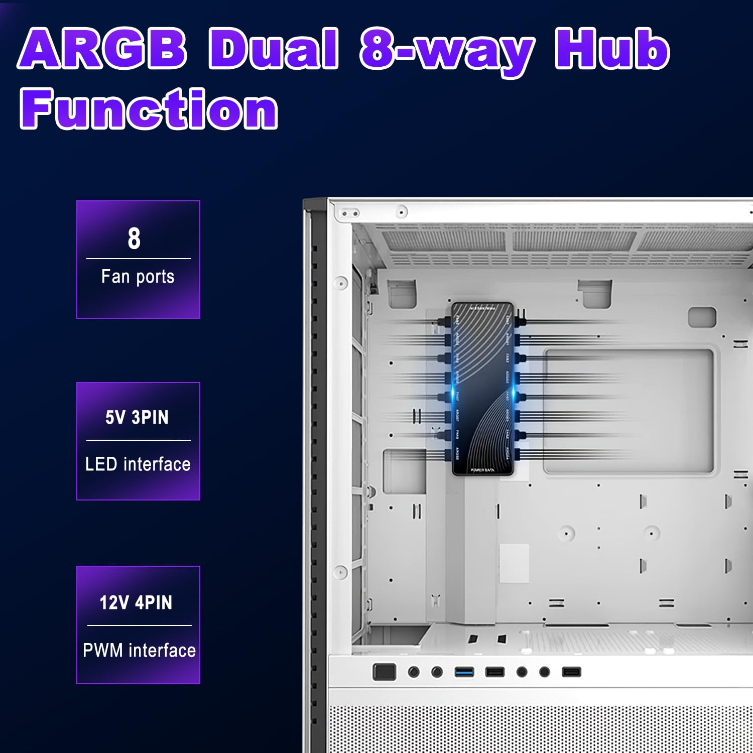 【Dual Power Input for Maximum Efficiency】: Equipped with 12V 4-Pin PWM and 5V 3-Pin ARGB controller, this hub offers seamless cooling control, making it the perfect choice for a cooling fan for PC setup.