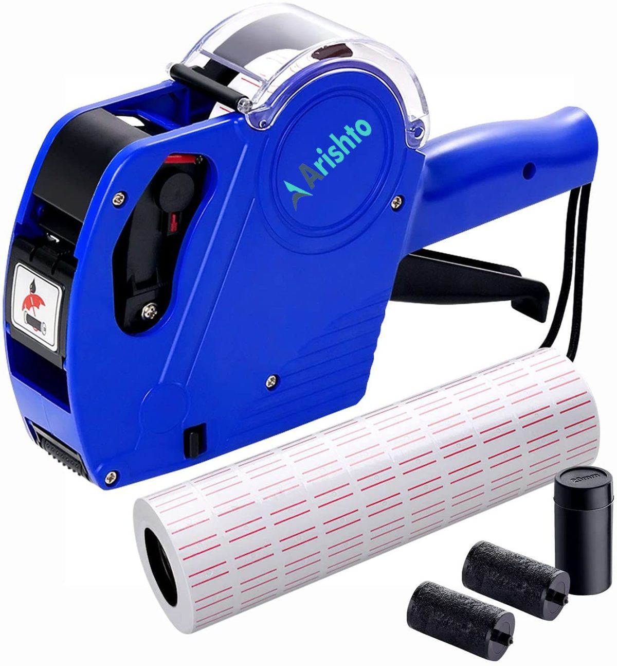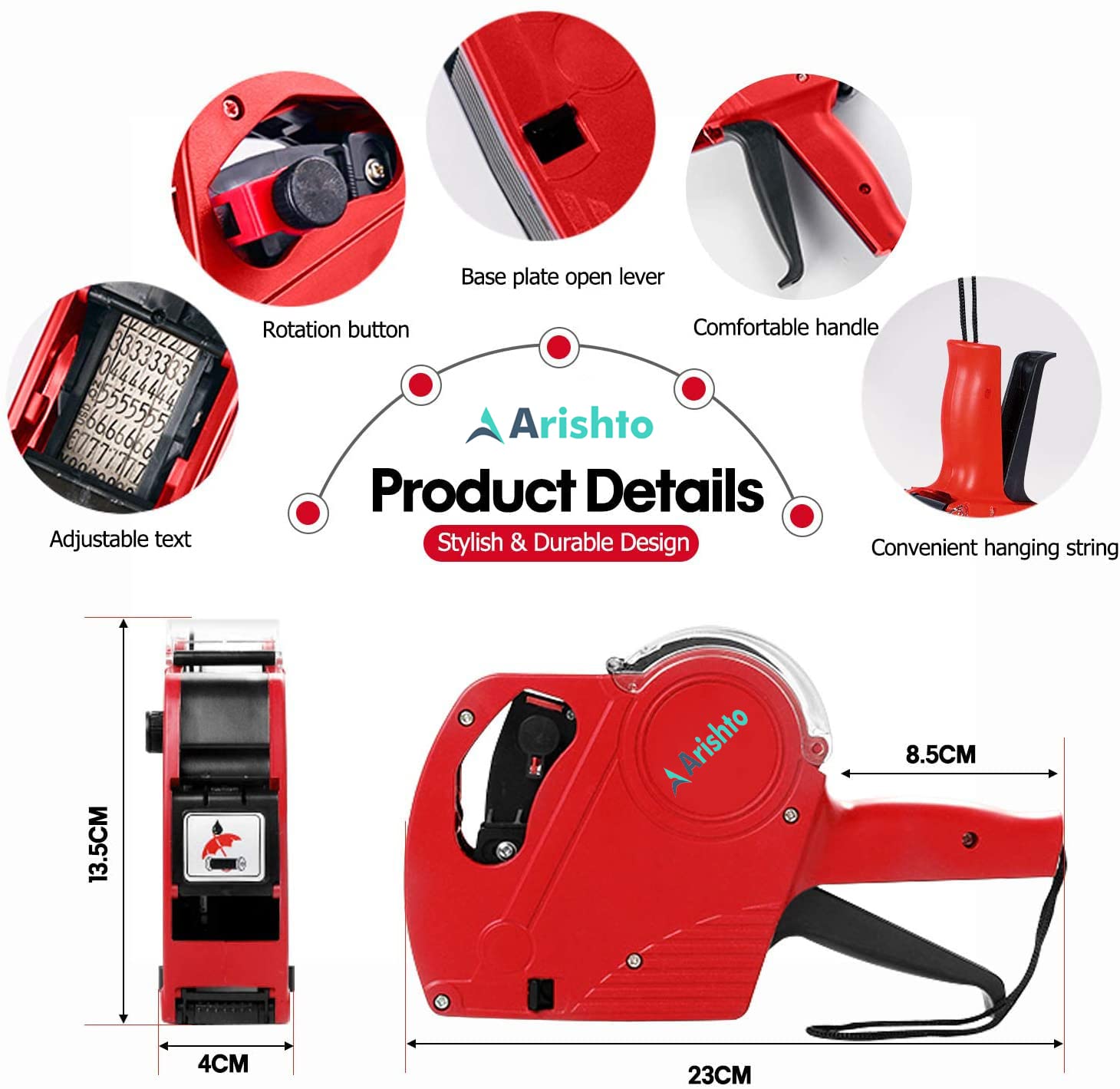 Arishto Pack of 1 8 Digits Price MRP Labeller Printing Rate Monochrome Wired Home Inkjet Printers Mrp Rate Gun, Label Gun with 2 Ink Rolls & 6000 MRP Sticker Labels