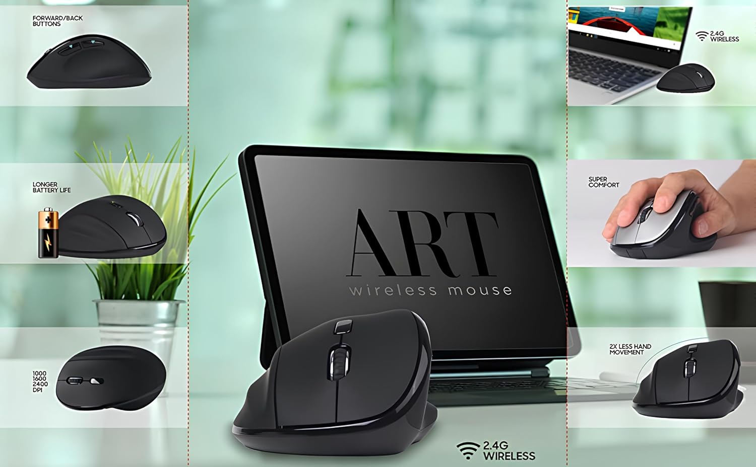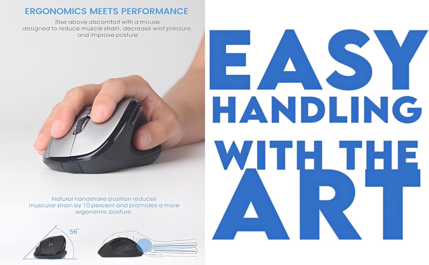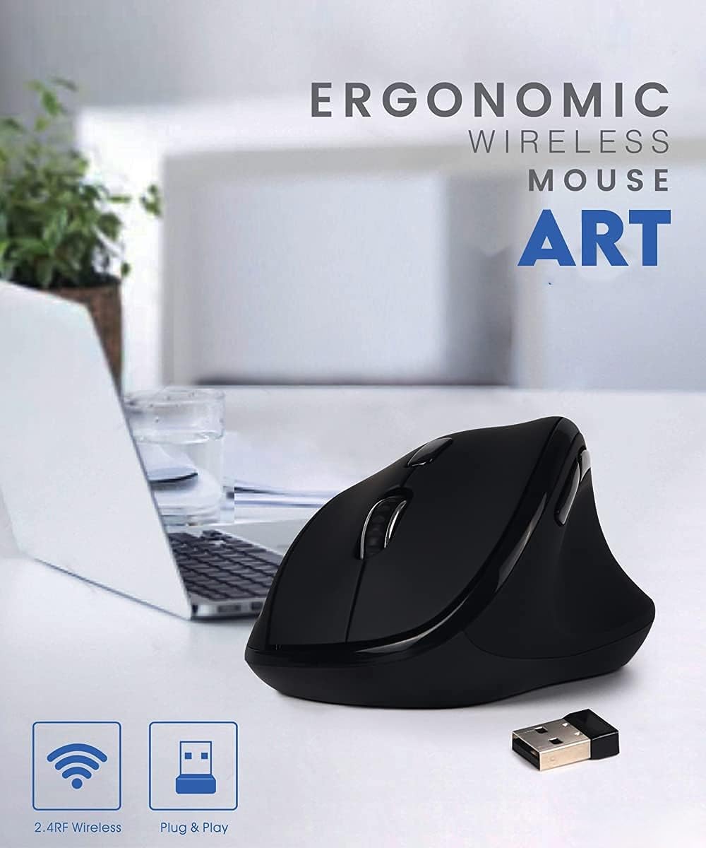 Art Ergonomic Mouse, Unique 56° (Degree) Vertical Wireless Mouse – 2.4GHz Optical Vertical Mice 6D with 3 DPI Modes (Art Vertical)