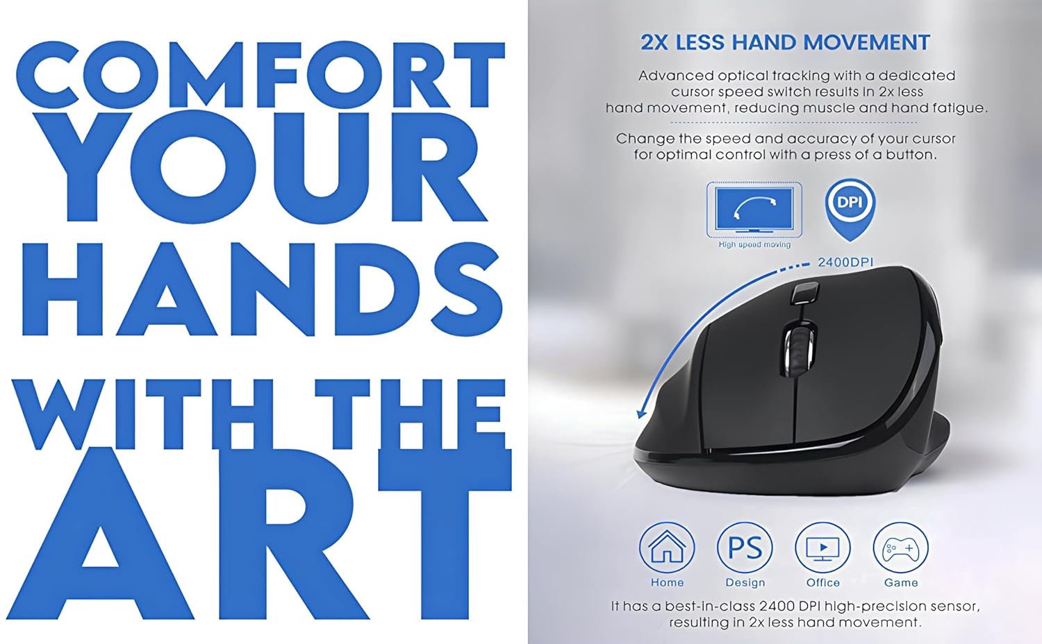 VERTICAL :: The new age vertical mouse gives the best comfort to your palm and connects it comfortably with your arm providing the easiness of working