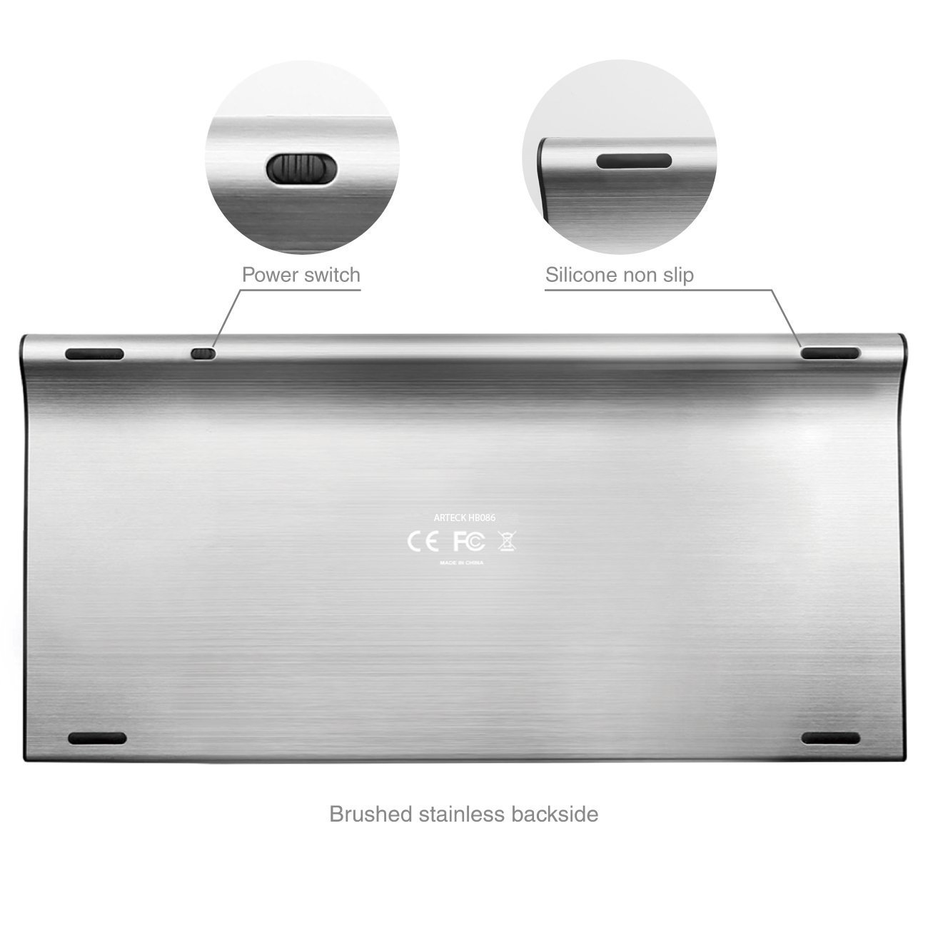 Arteck Stainless Steel Universal Portable Wireless Bluetooth Keyboard for iOS, Android, Windows Tablet PC Smartphone Built in Rechargeable 6 Month Battery