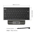 Stainless steel material gives heavy duty feeling and the low-profile keys offer quite and comfortable typing.