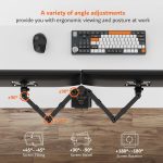 Sleek Modern Design to Elevate Any Setup ✨🖥️ : Featuring a contemporary, slimline look with a matte-black finish, Artikel’s dual monitor mount seamlessly blends with any home or office décor. Its integrated design not only maximizes functionality but also brings style and professionalism to your workstation ideal for those seeking both form and function in their workspace.
