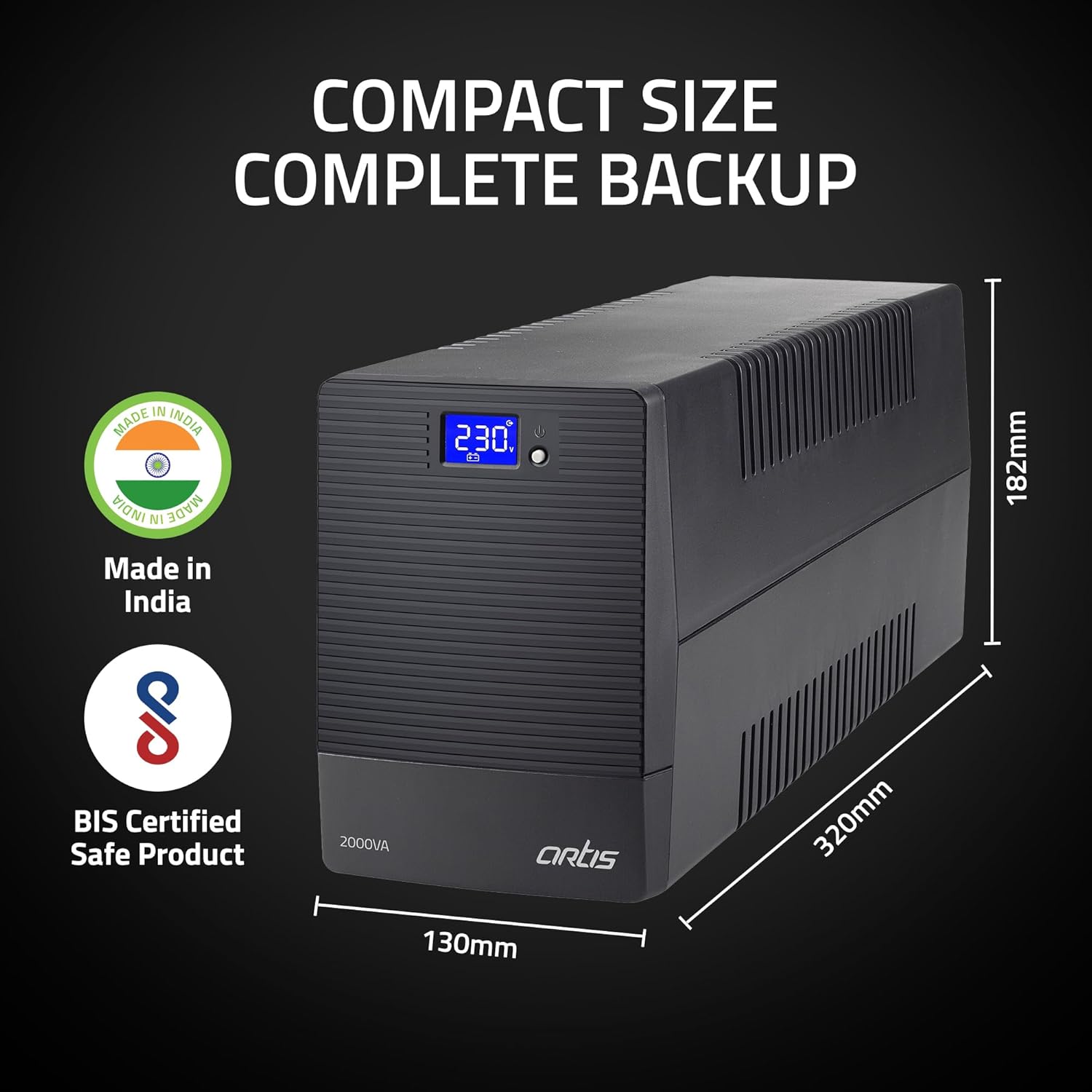 Artis Powersafe 2000VA LCD Line Interactive UPS for Personal/Gaming Computers, Desktop PCs, Laptops, Routers, Networking Devices and Gaming Consoles