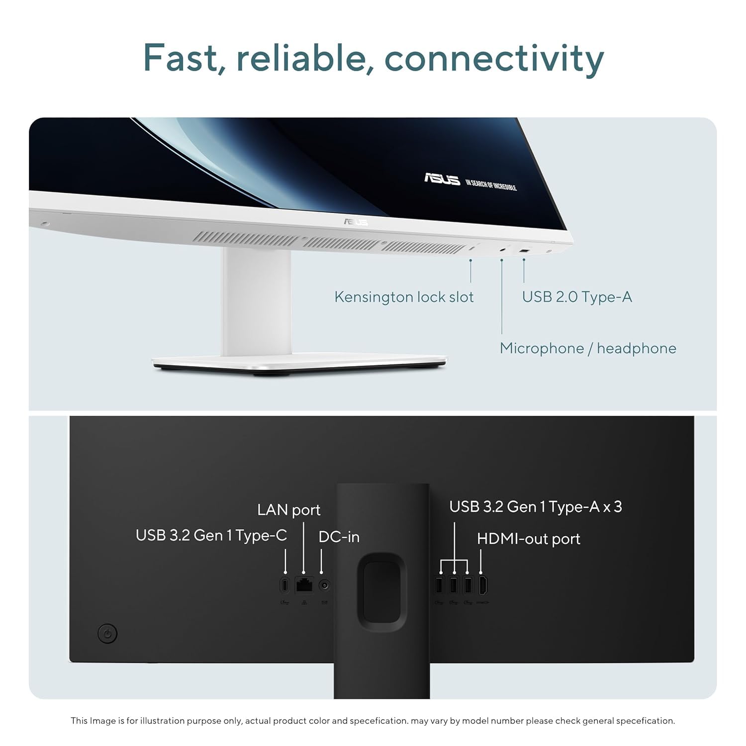 ASUS AiO V470,13th Gen Intel Core i3-1315U, 27″ FHD,100Hz,All-in-One PC(16GB RAM/512GB SSD/Windows 11/Office 24/Retractable Camera/Wireless Keyboard & Mouse/M365 Basic (1Year)*) V470VAB-KWPE002WS