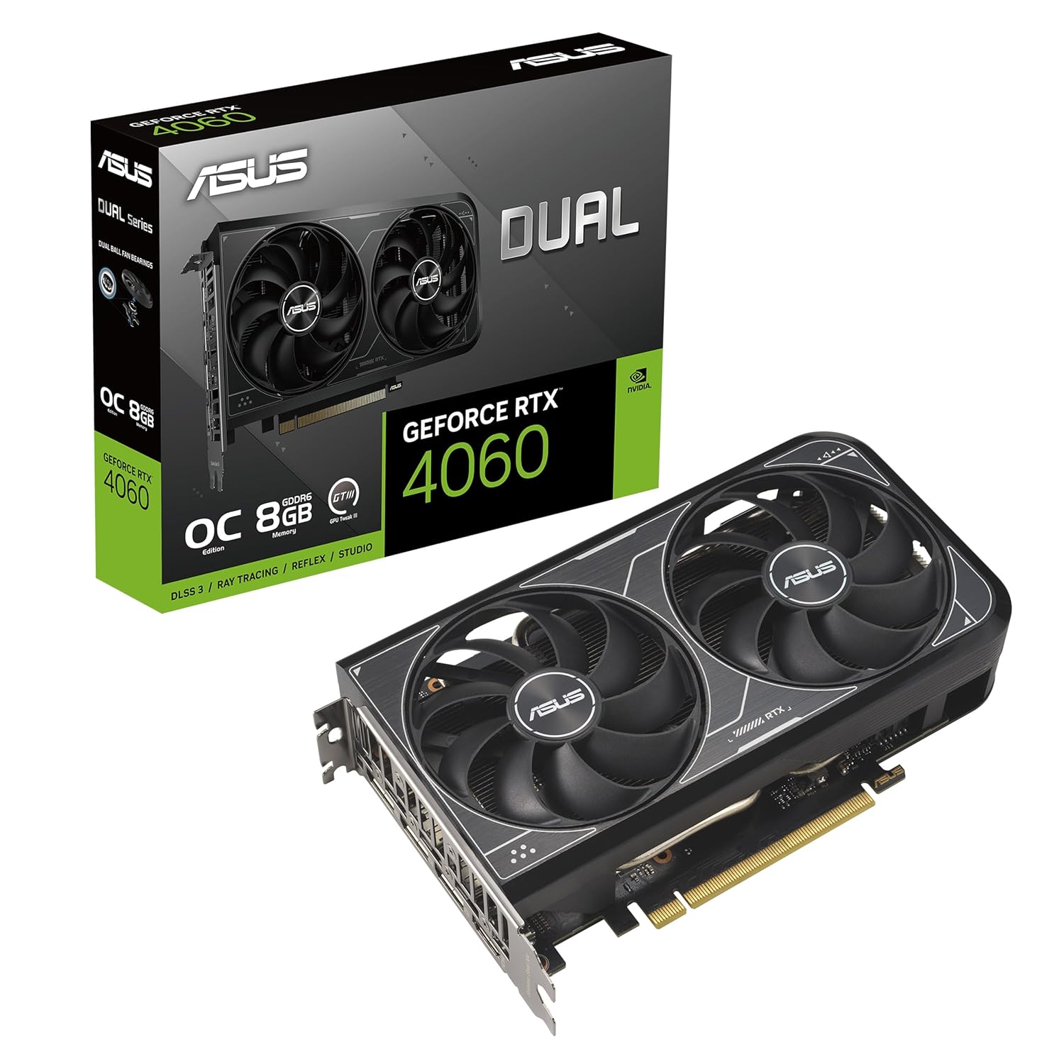 ASUS Dual GeForce RTX 4060 V2 OC Edition (PCIe 4.0, 8GB GDDR6, DLSS 3, HDMI 2.1a, DisplayPort 1.4a, 2-Slot Design, pci_e_x16 Axial-tech Fan Design, 0dB Technology, and More)