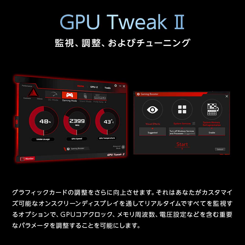 GPU Tweak II makes monitoring performance easier than ever, featuring game booster and XSplit Gamecaster, all via an intuitive interface