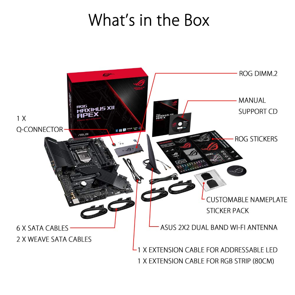 The ASUS ROG Maximus XII Apex ( WiFi 6) is the premiere overclocking platform for extreme OC enthusiasts looking to unlock the full potential of the latest generation Intel Core processors. Its optimized layout, enhanced power delivery and control, and striking design with a myriad of customization options will appeal to overclockers, gamers, and PC builders alike.